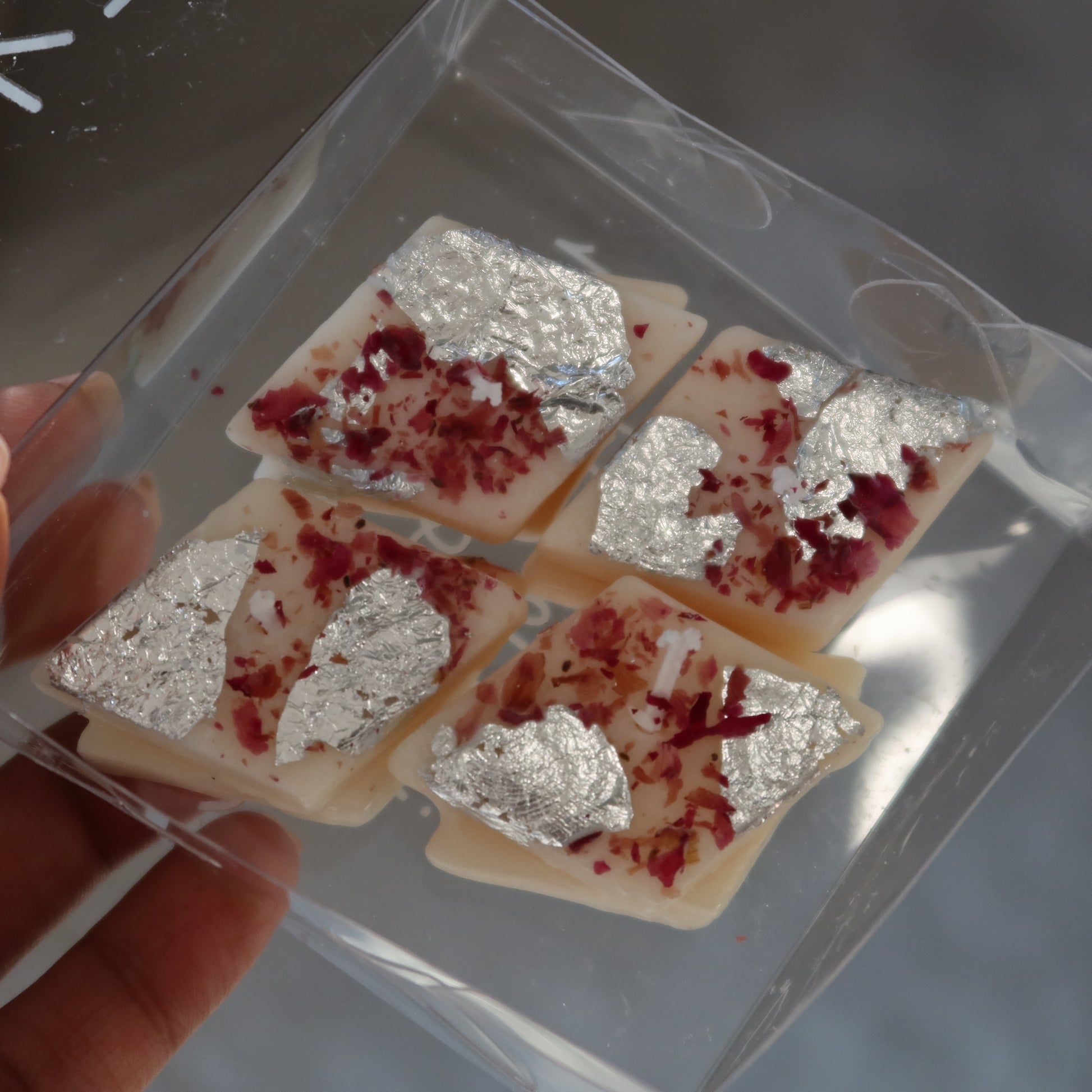 💖 Adorned with faux silver leaf and dried rose petals