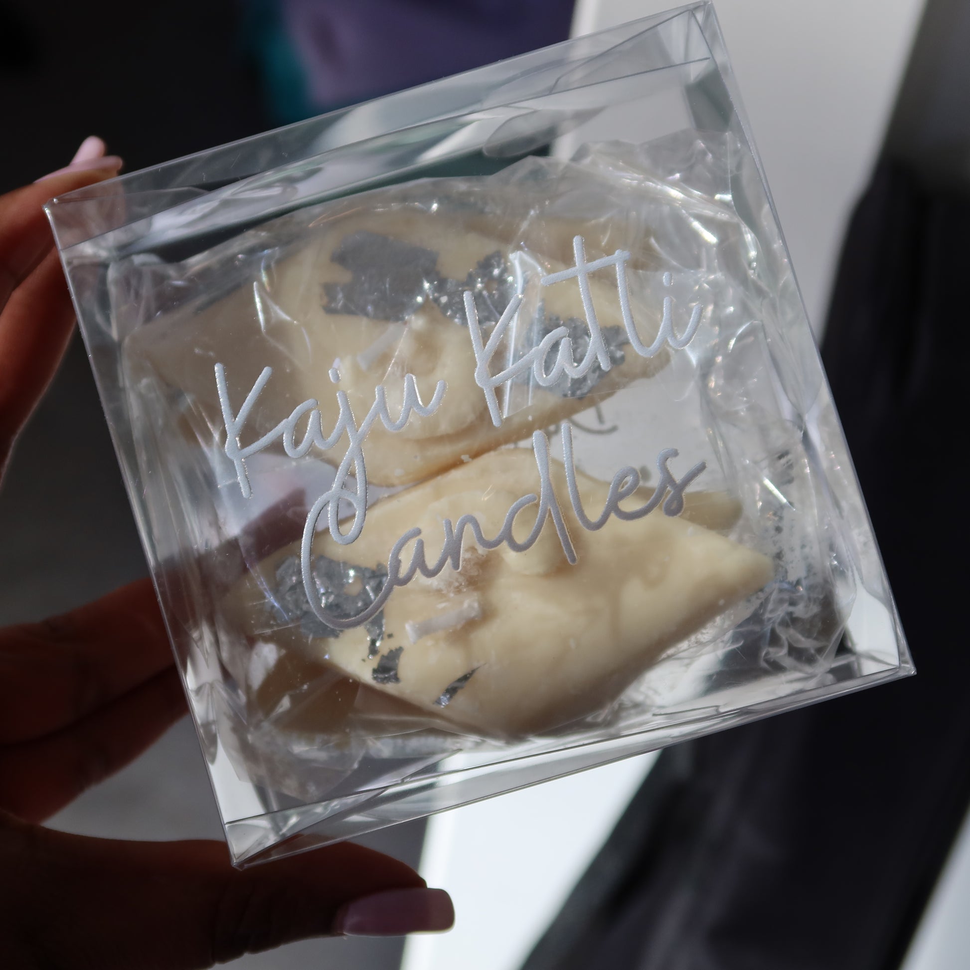 🕯 Includes: 2 Large kaju katli-shaped handmade soy wax candles